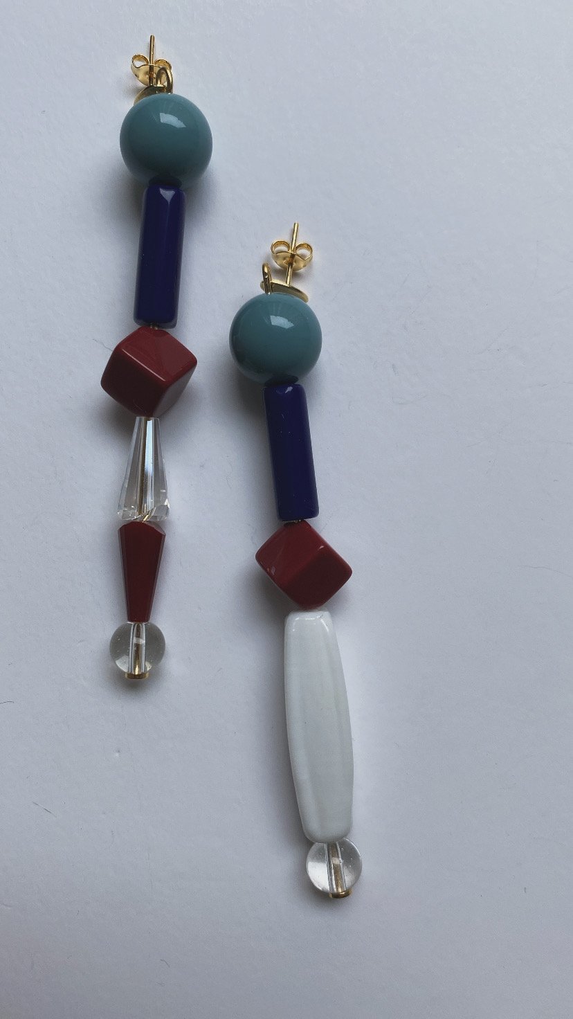 Par de pendientes compuesto por piezas de resina vintage y vidrio con bases de Goldfilled.